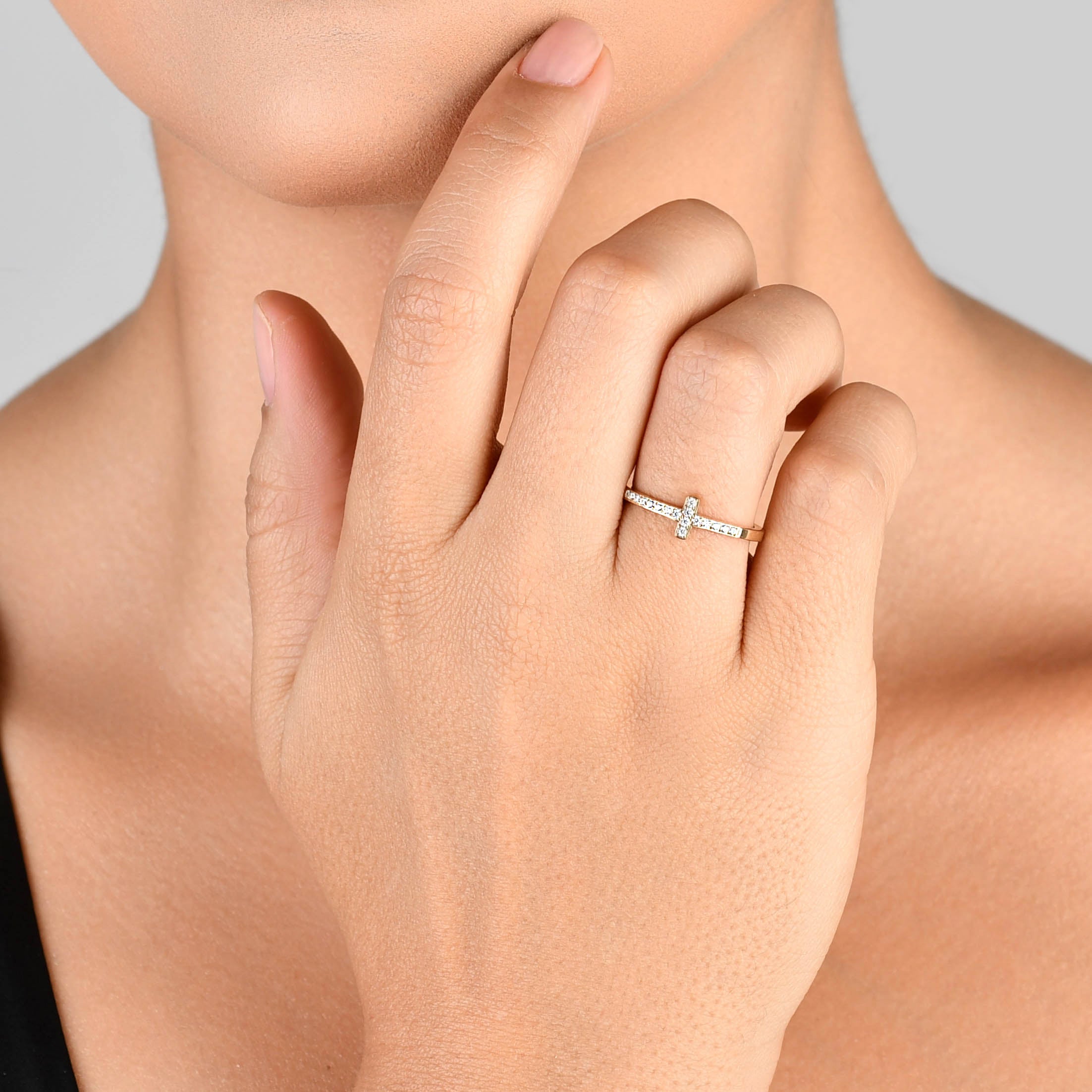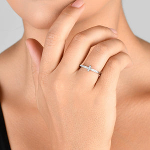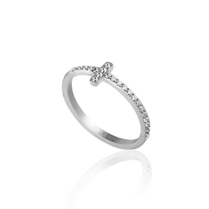 ANEL GLOW MEIA ALIANÇA CRUZ COM ZIRCÔNIAS