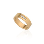 ALIANÇA BASIC OUI RETA 3 ZIRCÔNIAS AÇO ESCOVADO COM BANHO DE OURO 5MM
